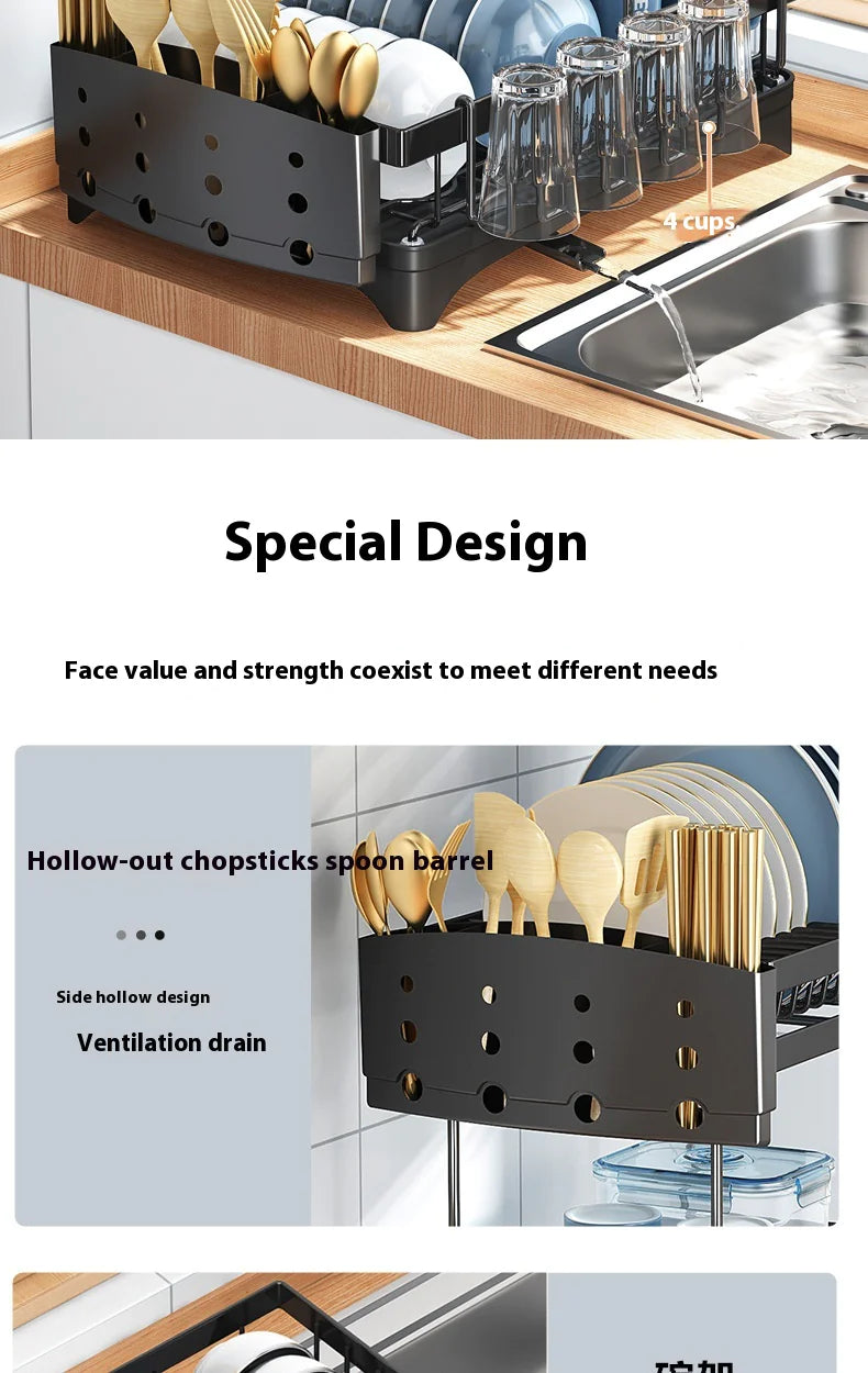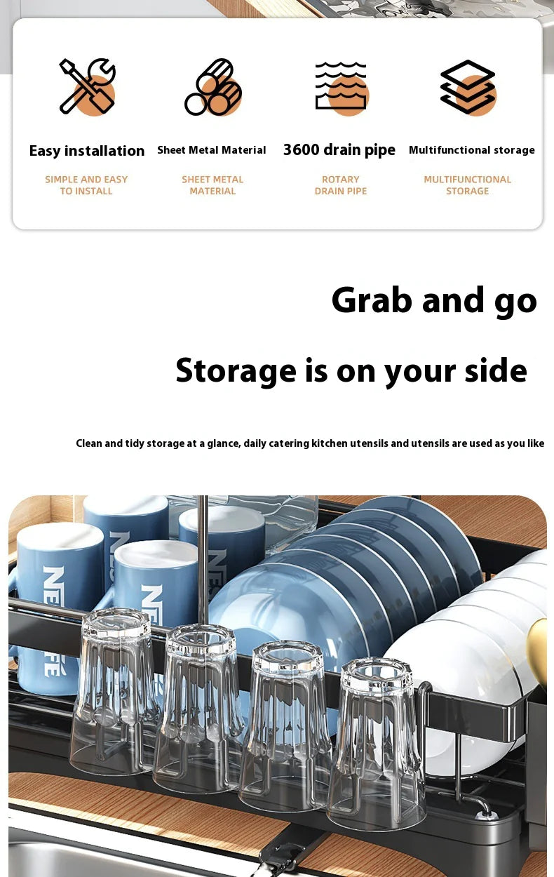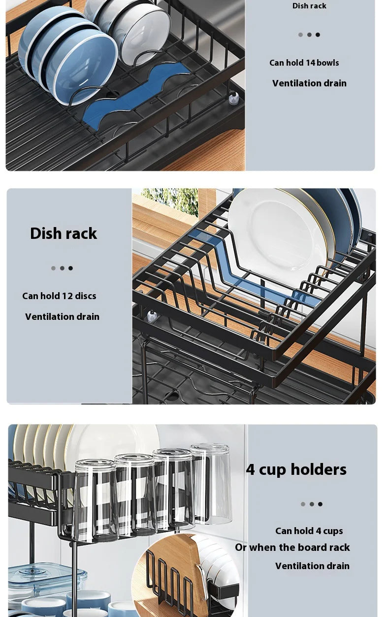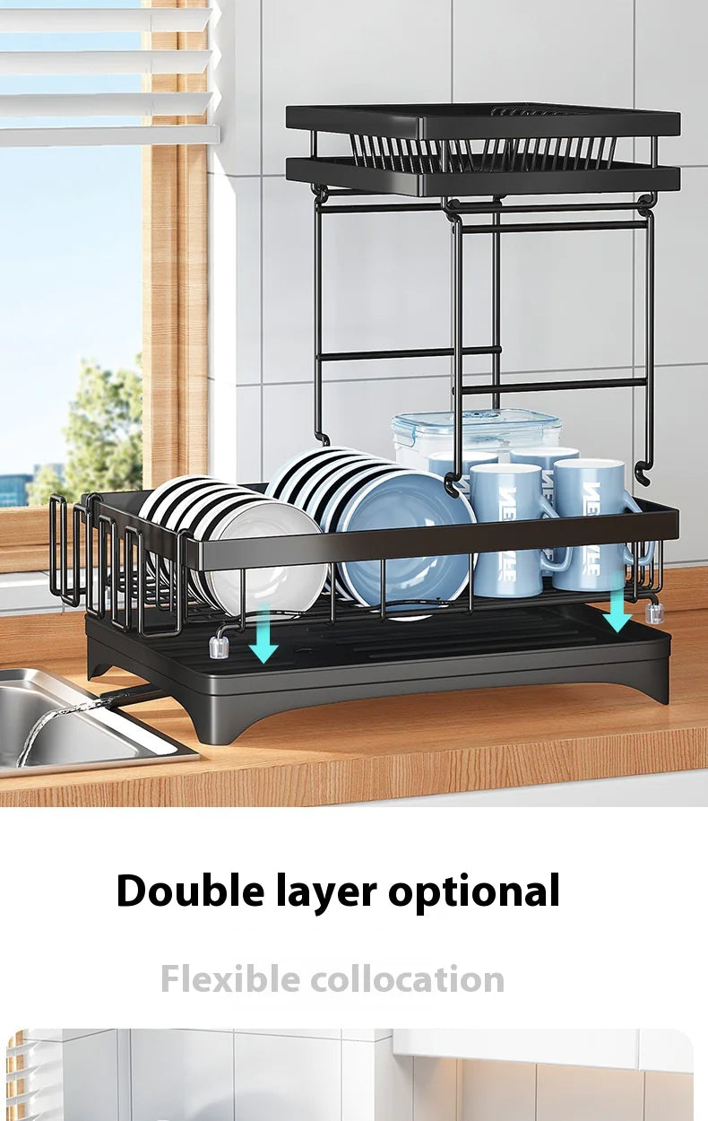 Keep your kitchen organized and tidy with our multifunctional dish rack. This practical storage solution features ample space for dishes, utensils, and glassware. The elevated design promotes quick air drying, preventing water buildup and mildew.